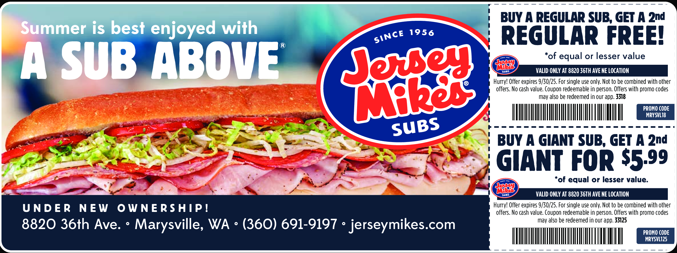 Buy a Giant Sub, Get a 2nd Giant for $5.99 *of equal or lesser value