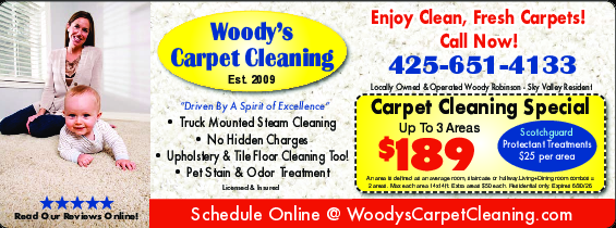 Carpet Cleaning Special! Up to 3 Areas $189 - Scotchguard Protectant Treatments $25 per area