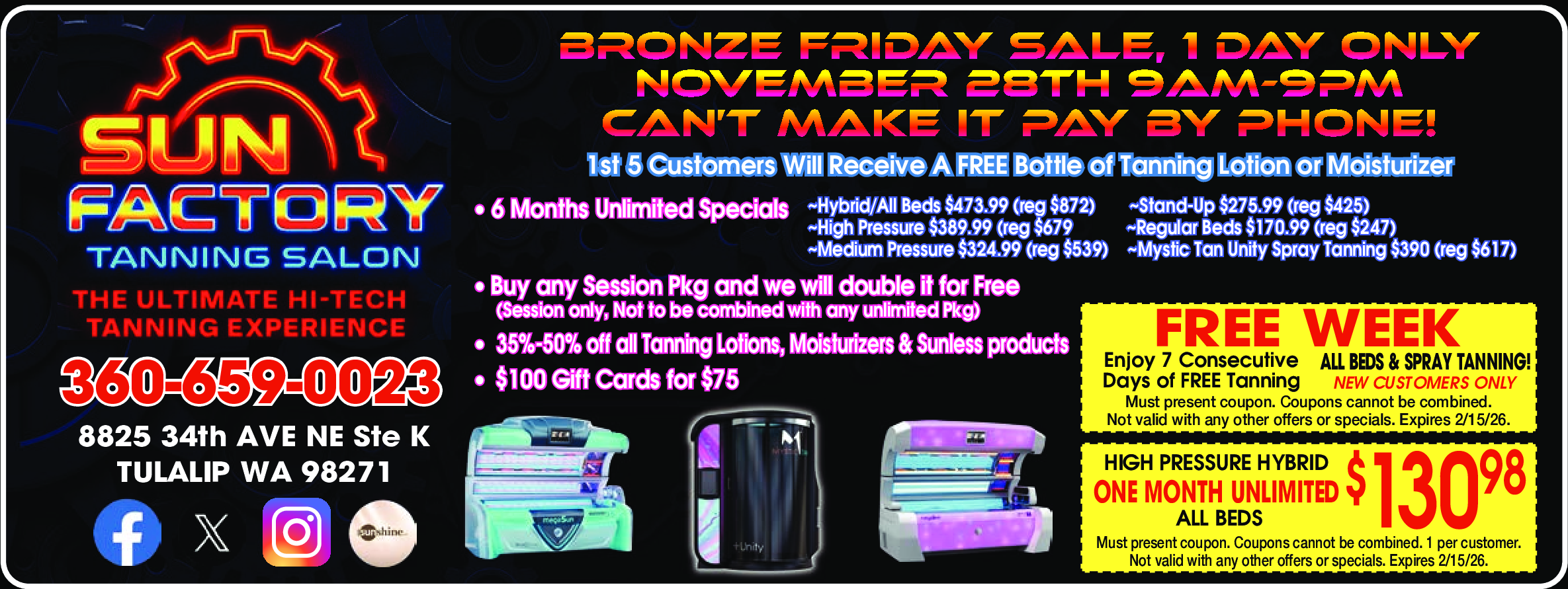 FREE WEEK! Enjoy 7 Consecutive Days of FREE Tanning - All Beds & Spray Tanning!