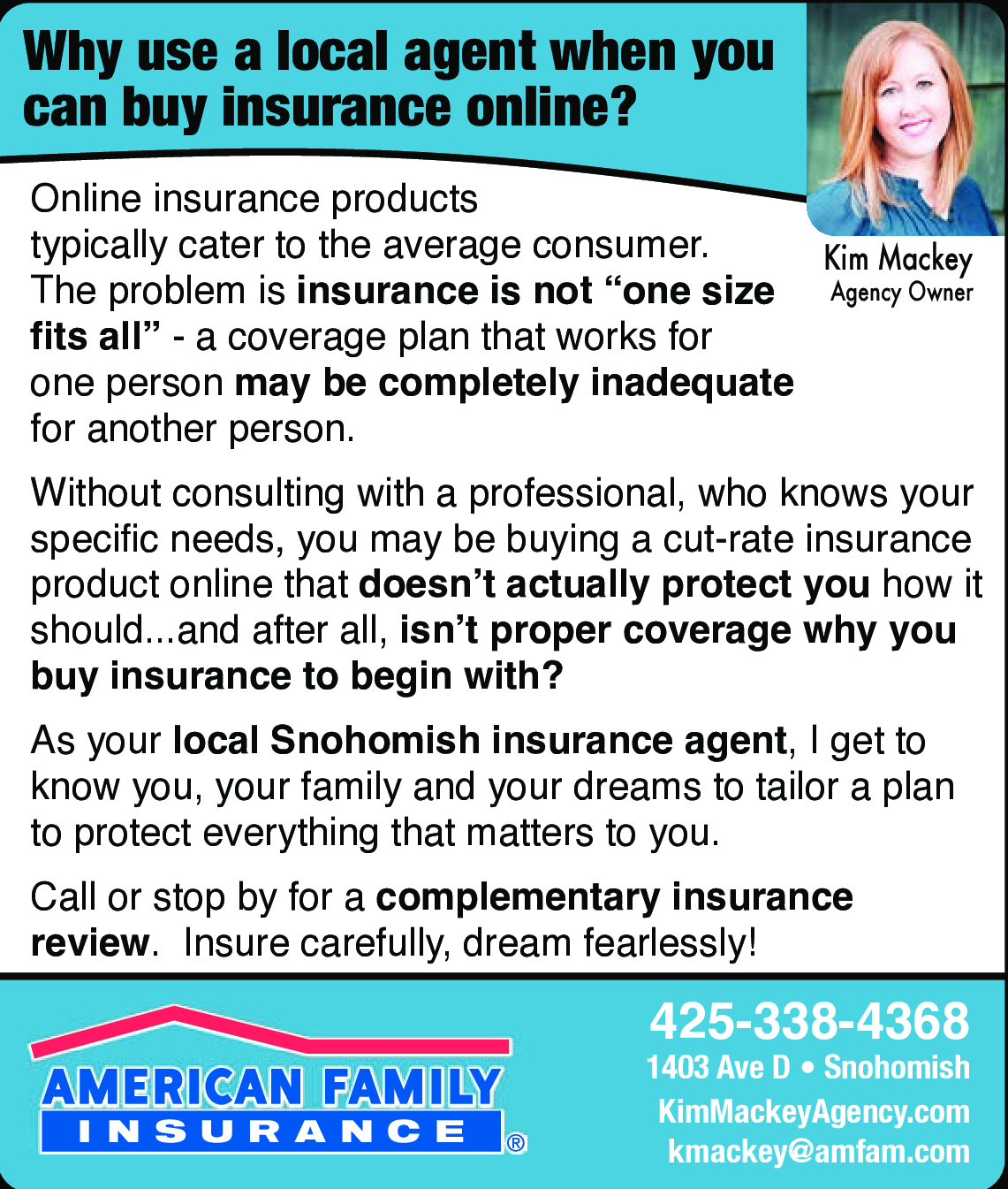 Call or stop by for a complementary insurance review! 425-338-4368