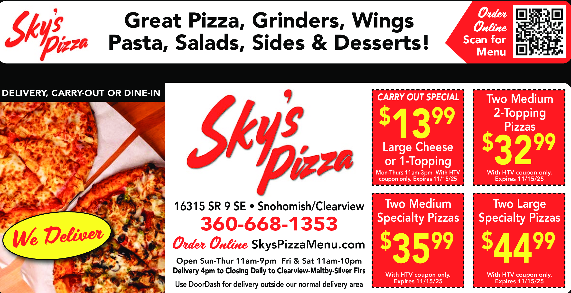 Mon-Thurs 11am-3pm. With HTV coupon only. Expires 11/15/25.