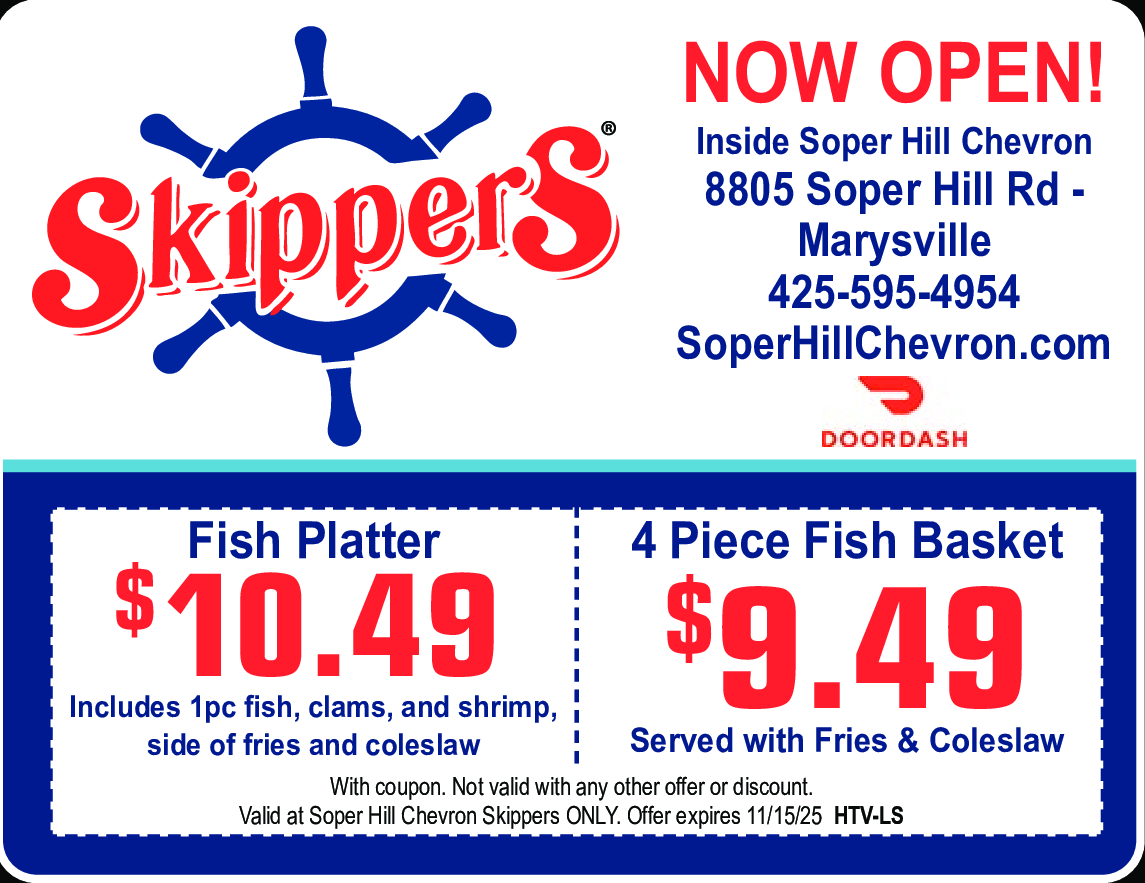 Fish Platter $10.49 - Includes 1pc fish, clams, and shrimp, side of fries, and coleslaw