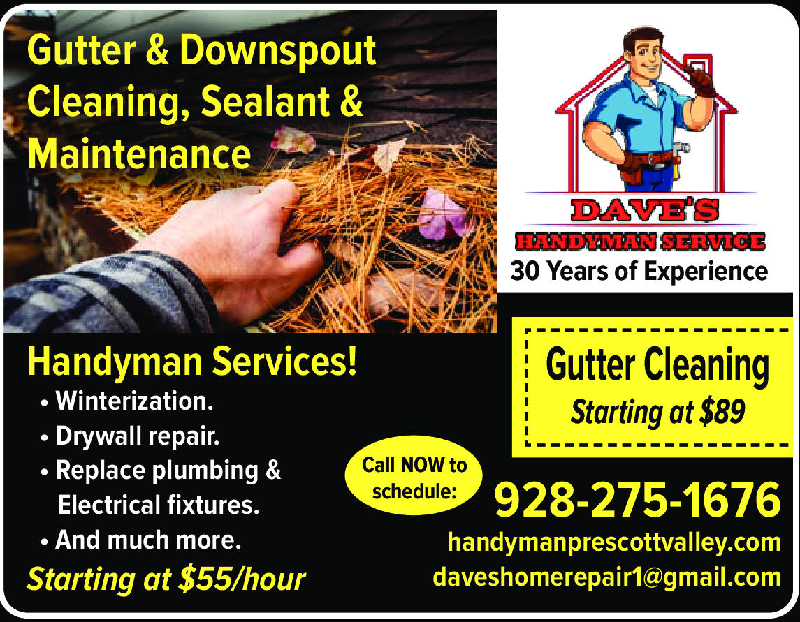 Gutter Cleaning Starting at $89! Call NOW to schedule! 928-275-1676