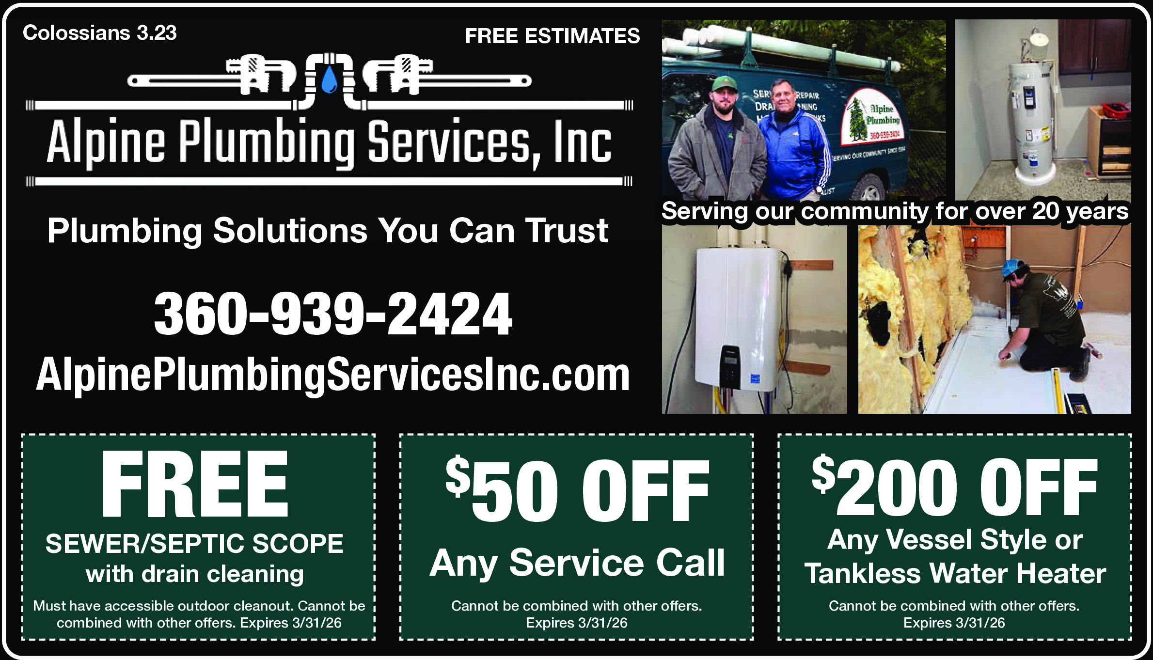 Must have accessible outdoor cleanout. Cannot be combined with other offers. Expires 3/31/26.