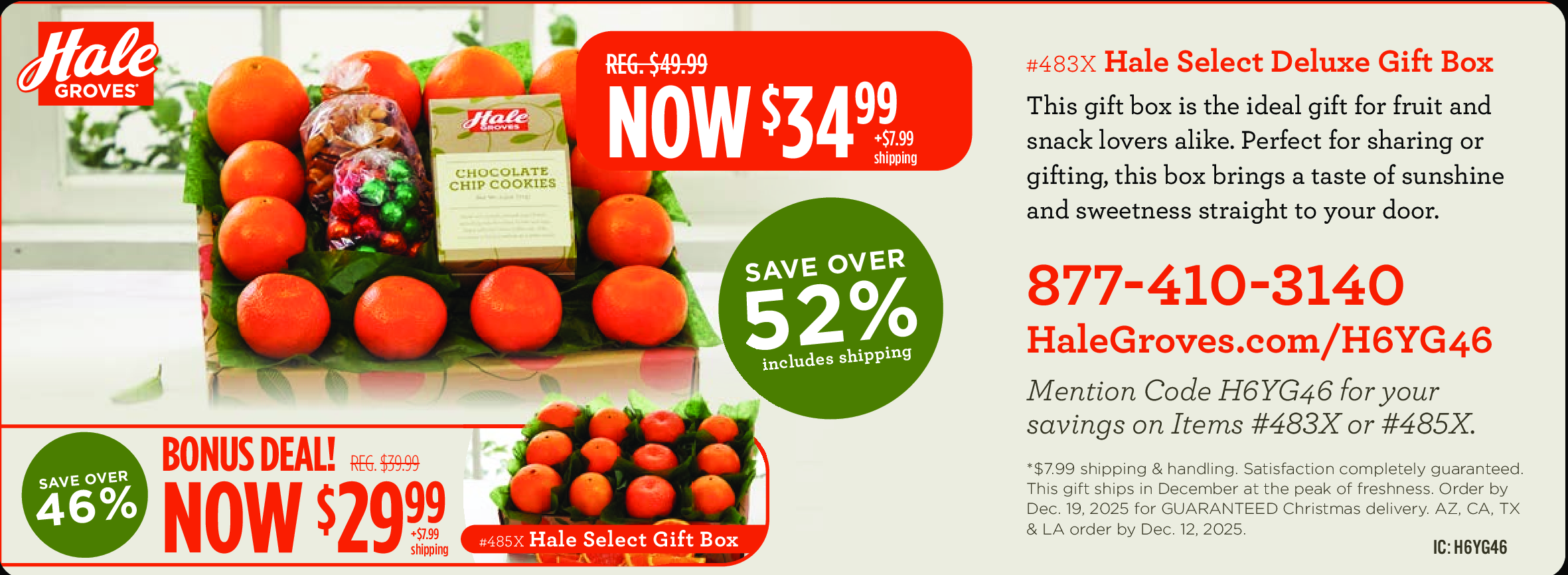 Mention code H6YG46 for your savings on Items #483X or #485X. *$7.99 shipping & handling. Satisfacti...Moreon completely guaranteed. This gift ships in December at the peak of freshness. Order by Dec. 19, 2025 for GUARANTEED Christmas delivery. AZ, CA, TX, & LA order by Dec. 12, 2025. IC: H6YG46 Less