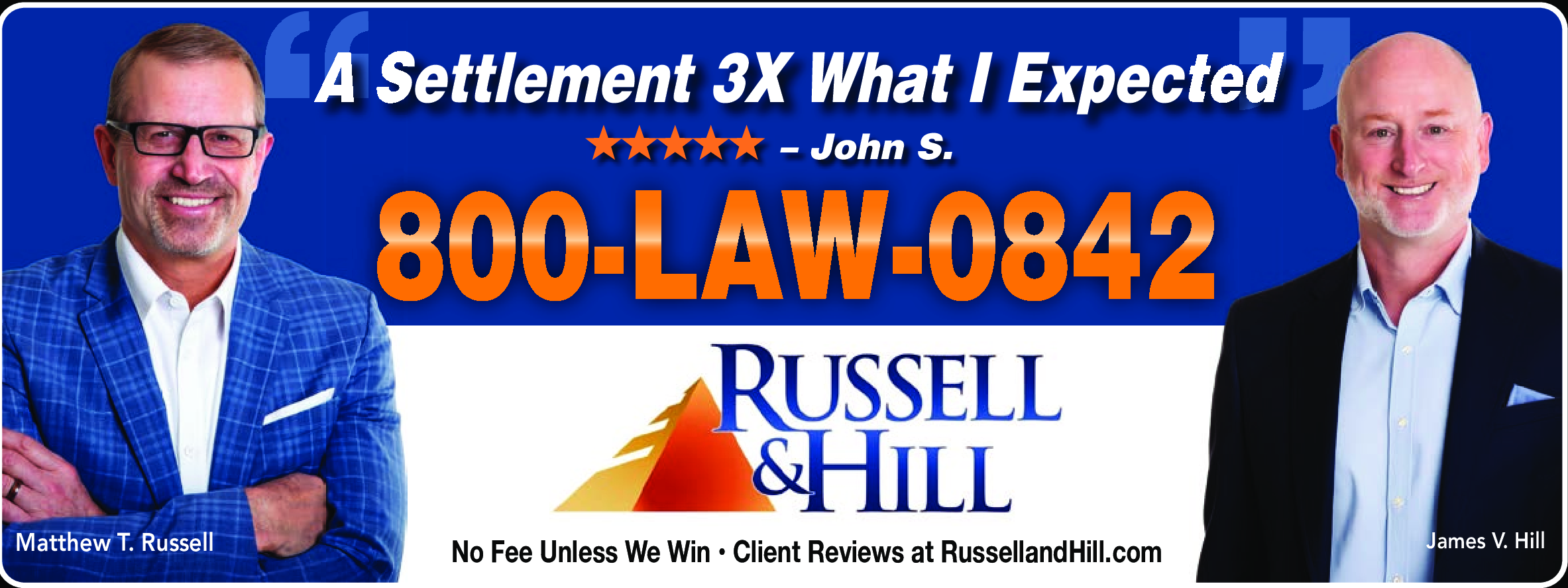 No Fee Unless We Win! Call 1-800-LAW-0842