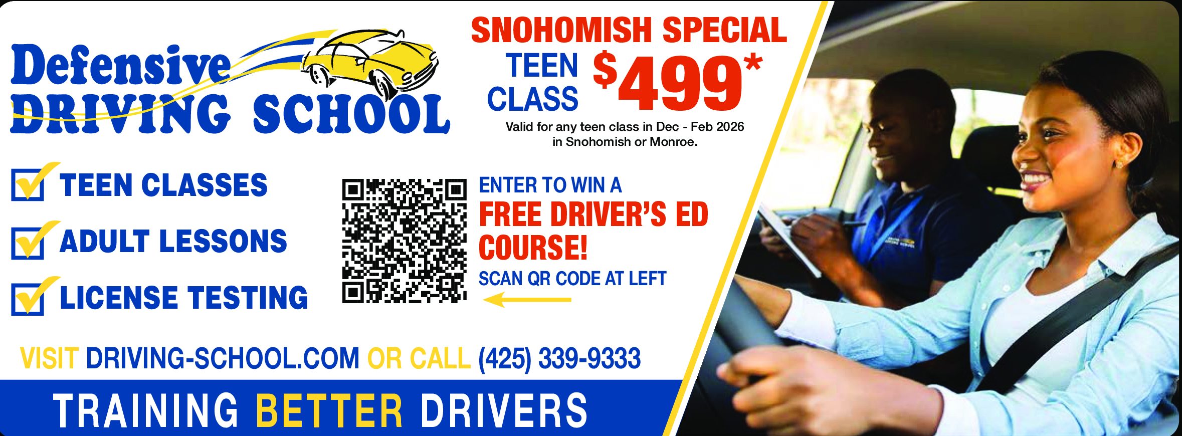 Valid for any teen class in Dec - Deb 2026 in Snohomish or Monroe