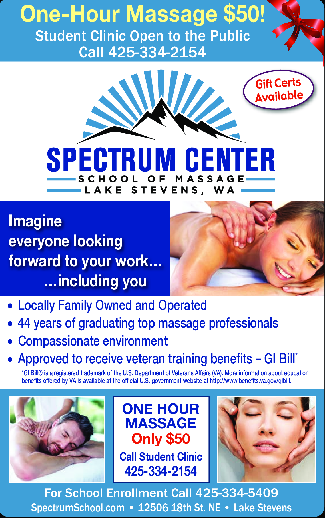 One Hour Massage $50! Call Student Clinic at 425-334-2154