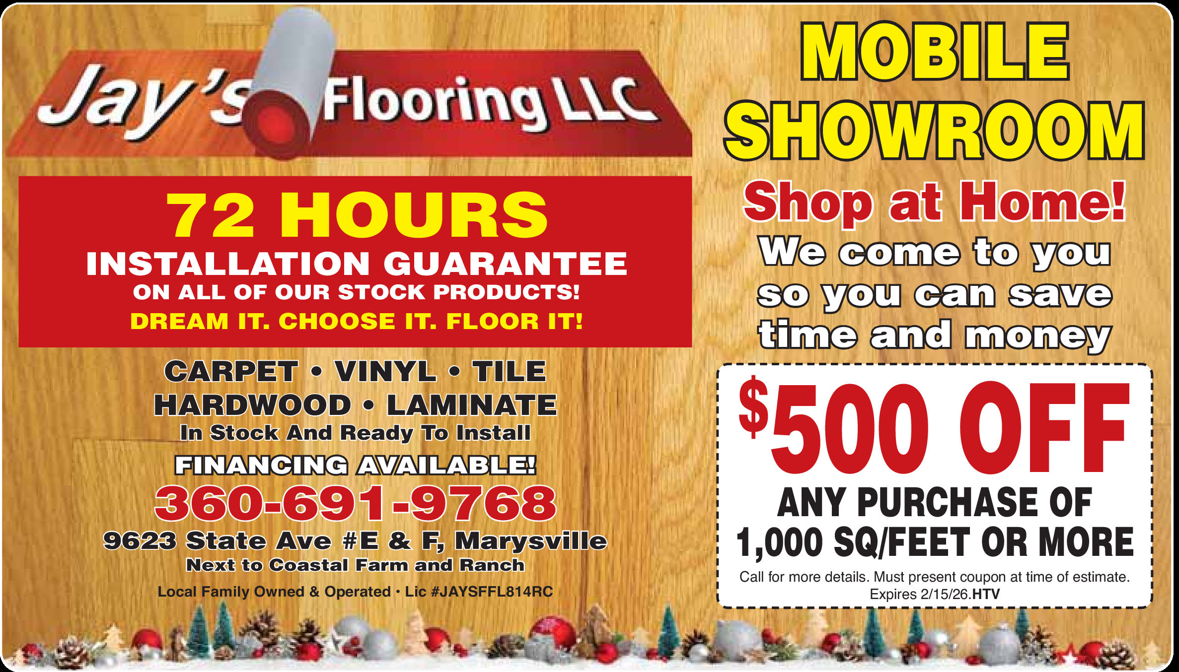 $500 OFF Any Purchase of 1,000 sq/ft or more