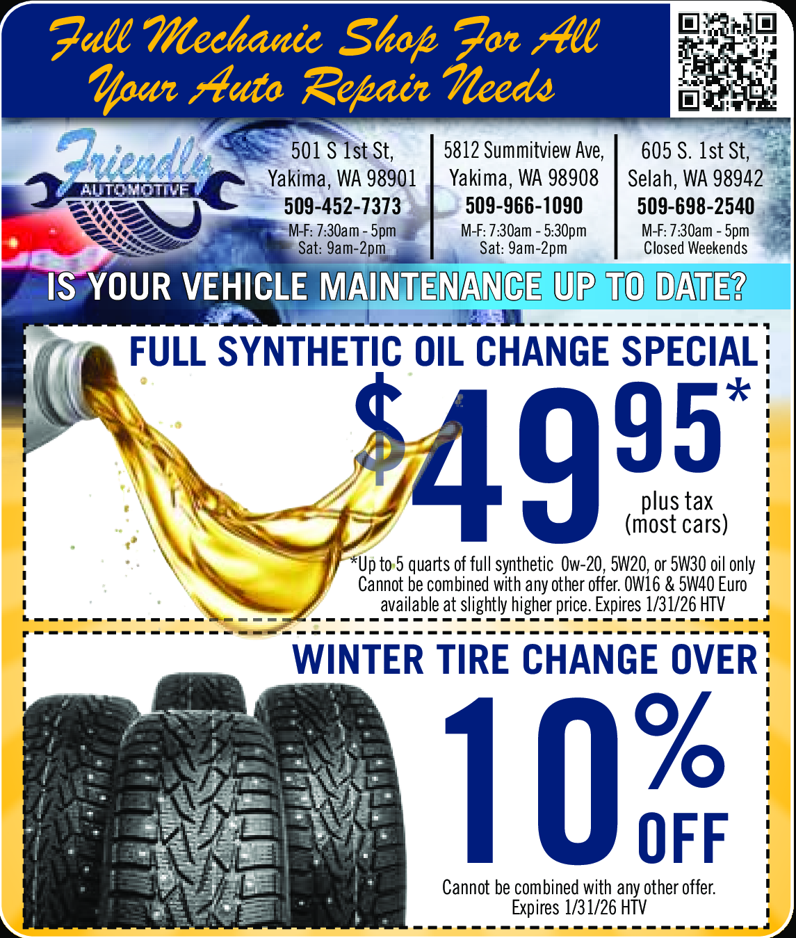 Full Synthetic Oil Change Special $49.95* plus tax (most cars)
