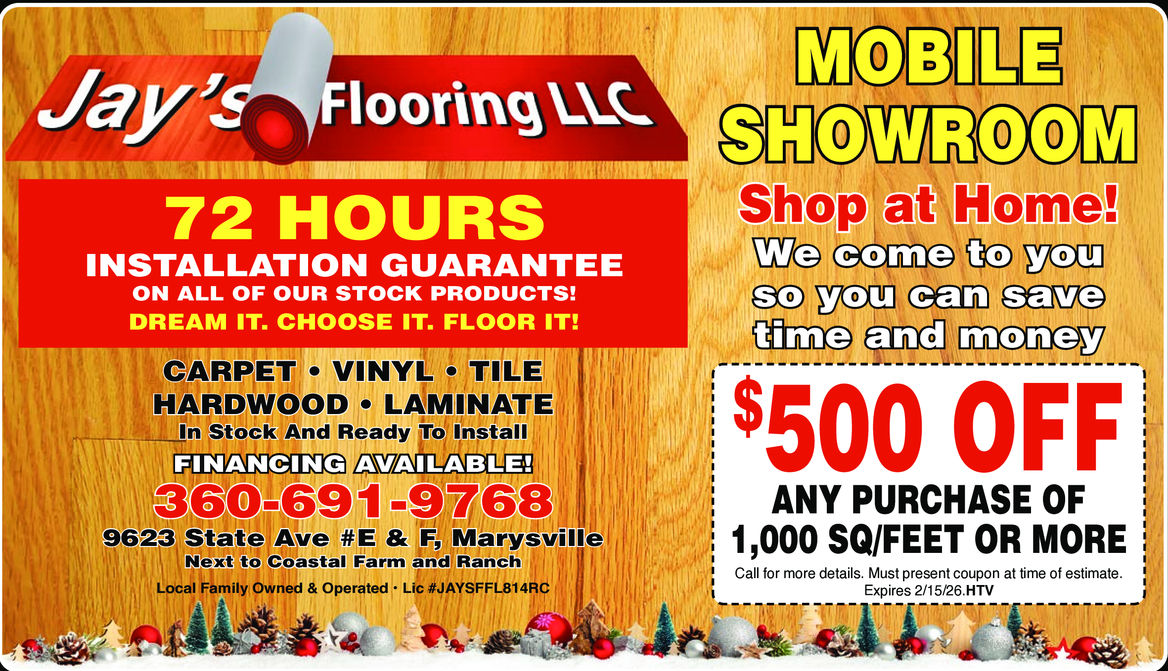 Call for more details. Must present coupon at time of estimate. Expires 2/15/26. HTV