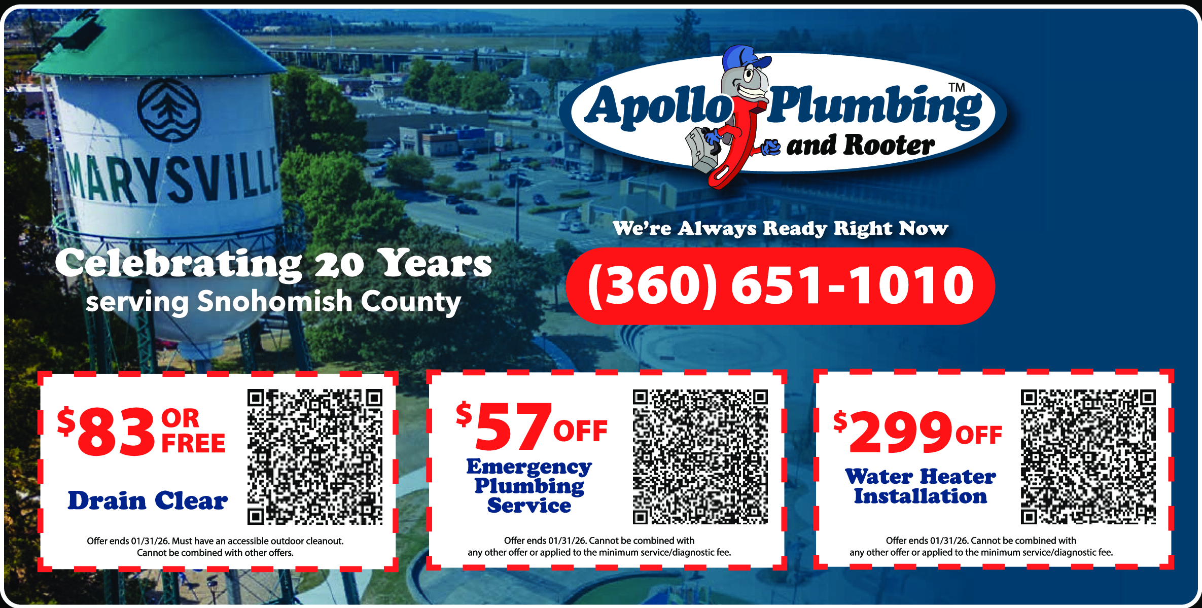 Offer ends 1/31/26. Must have an accessible outdoor cleanout. Cannot be combined with other offers.