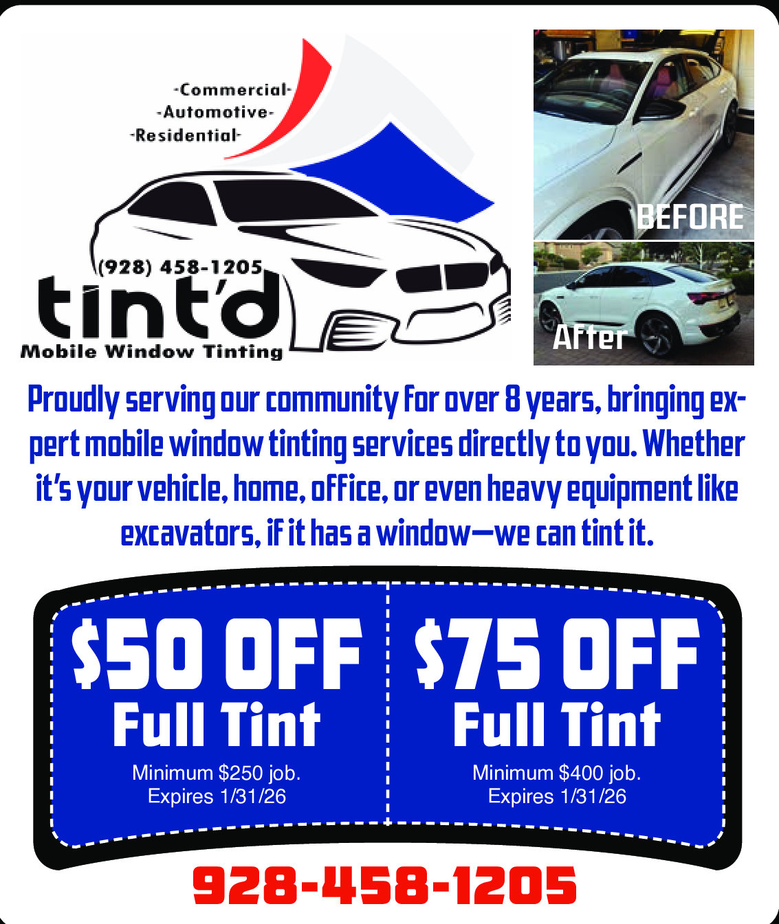 Minimum $400 job. Expires 1/31/26.