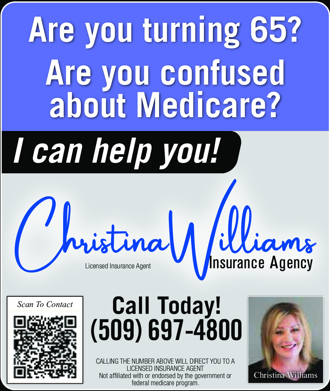 Are you turning 65? Are you confused about Medicare? I can help you! Call 509-697-4800 Today!