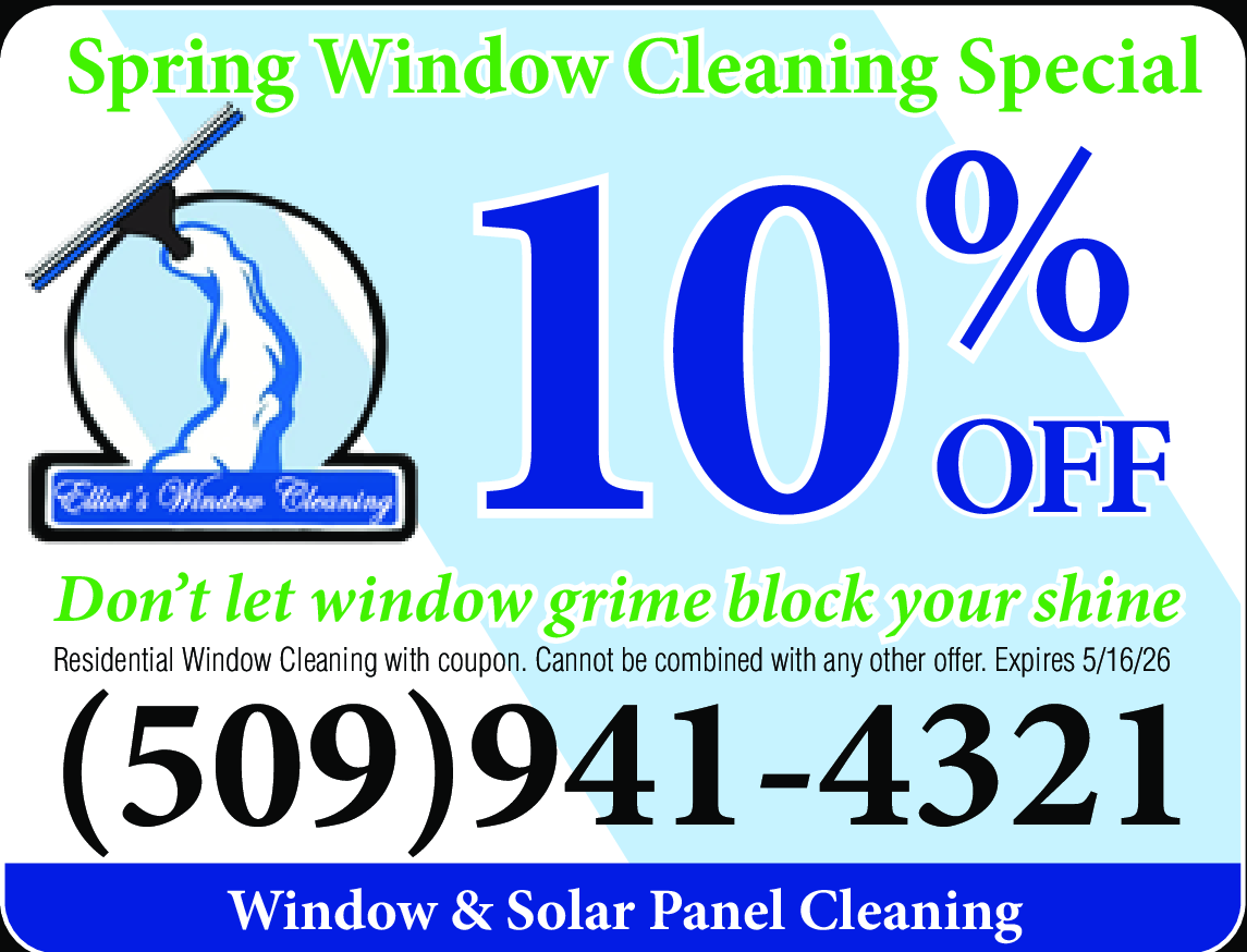 Residential window cleaning with coupon. Cannot be combined with any other offer. Expires 5/16/26.