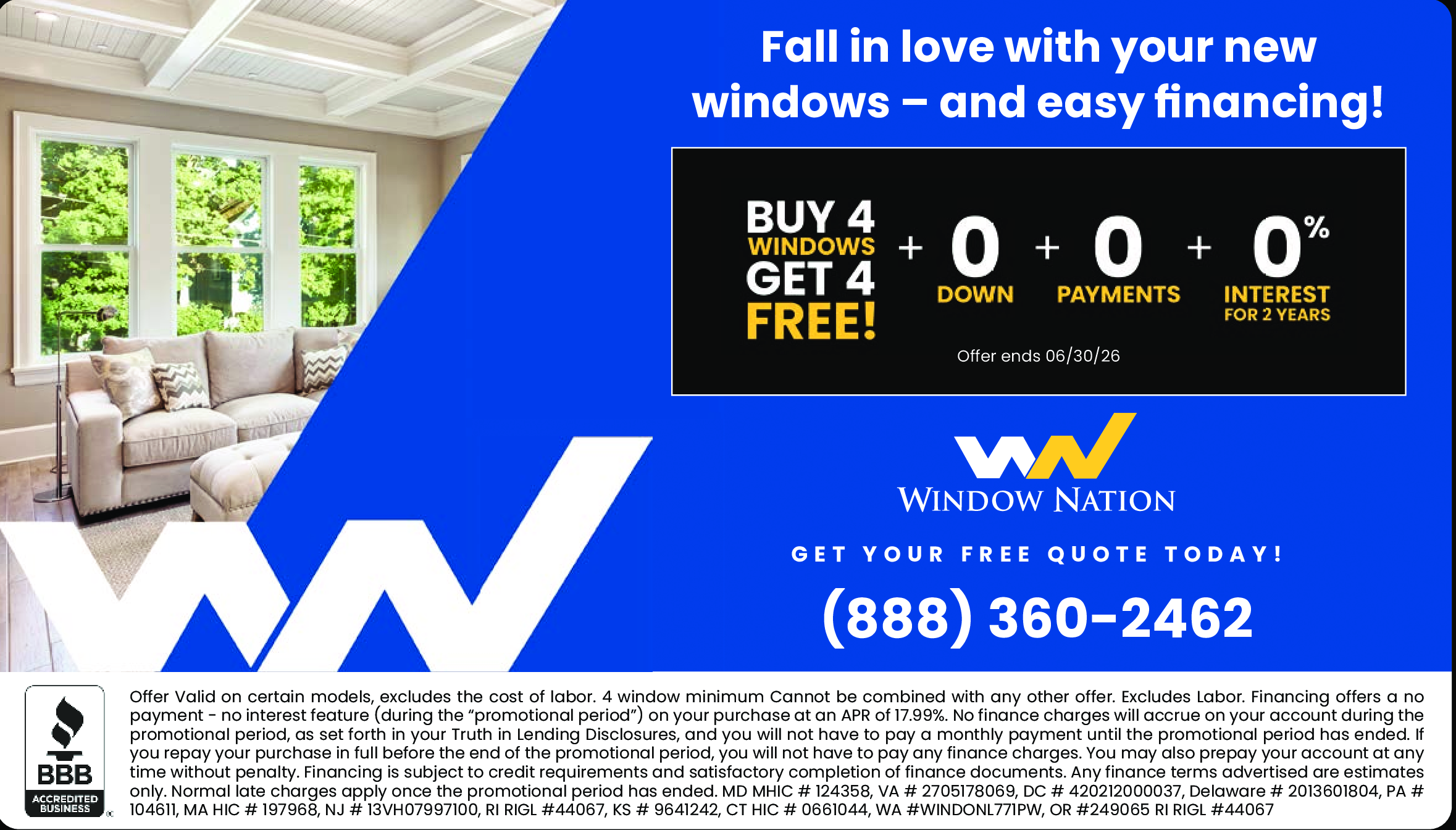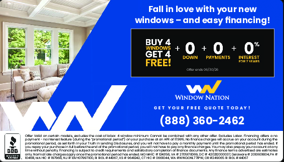 Buy 4 Windows, Get 4 FREE! + 0 Down + 0 Payments + 0% Interest for 2 Years