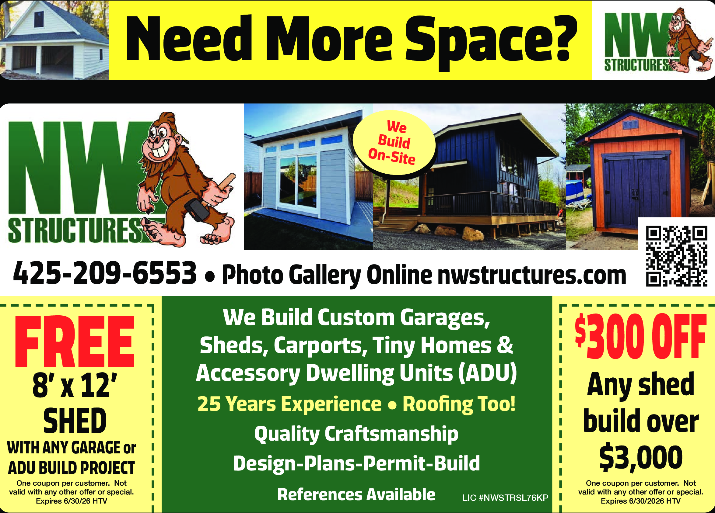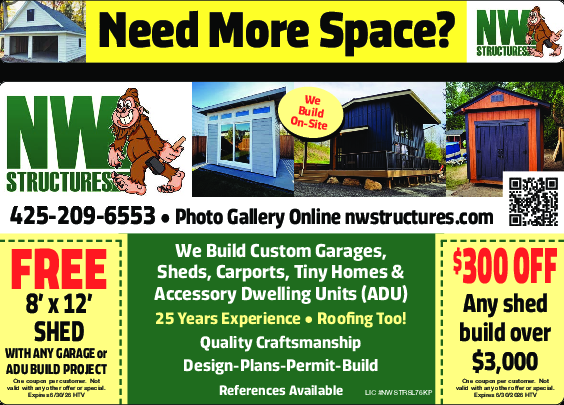 FREE 8' x 12' Shed with Any Garage or ADU Build Project