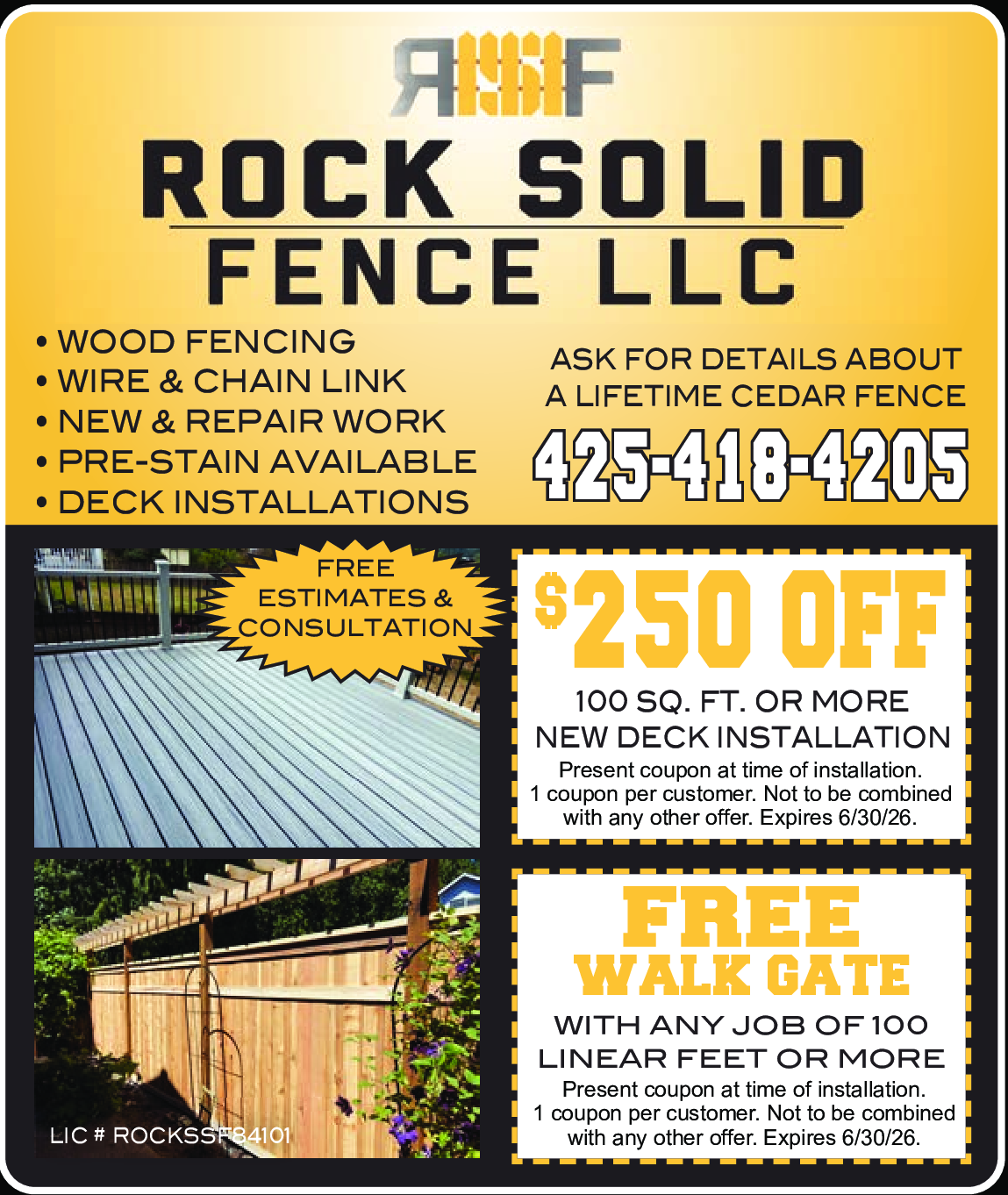 FREE Walk Gate with Any Job of 100 Linear Feet or More