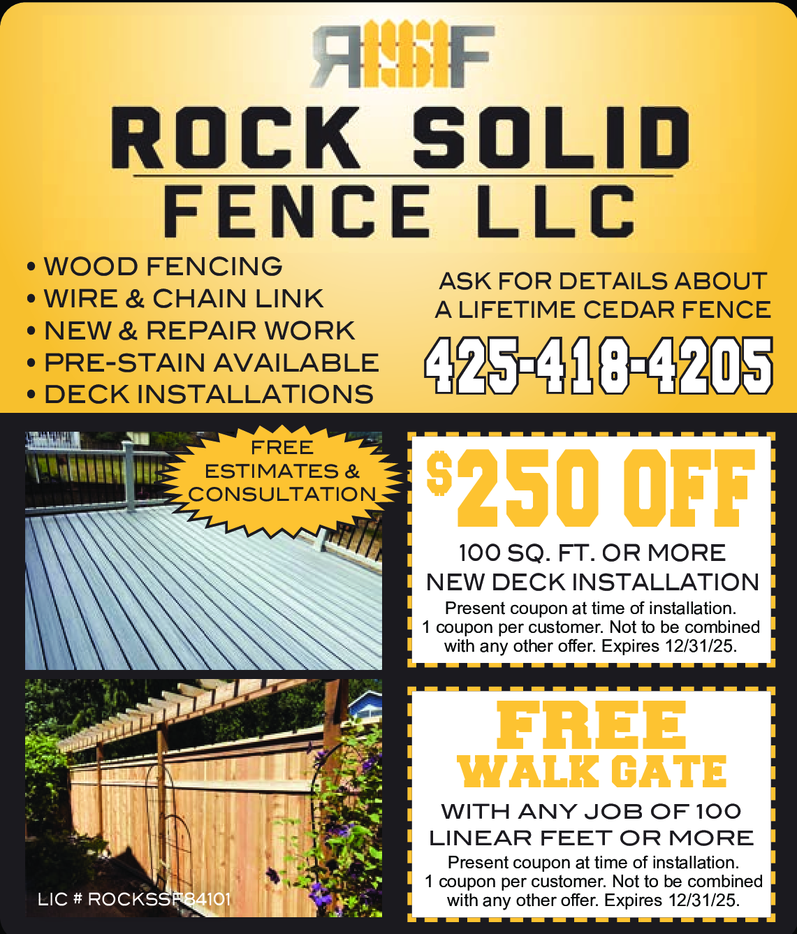 FREE Walk Gate with Any Job of 100 Linear Feet or More