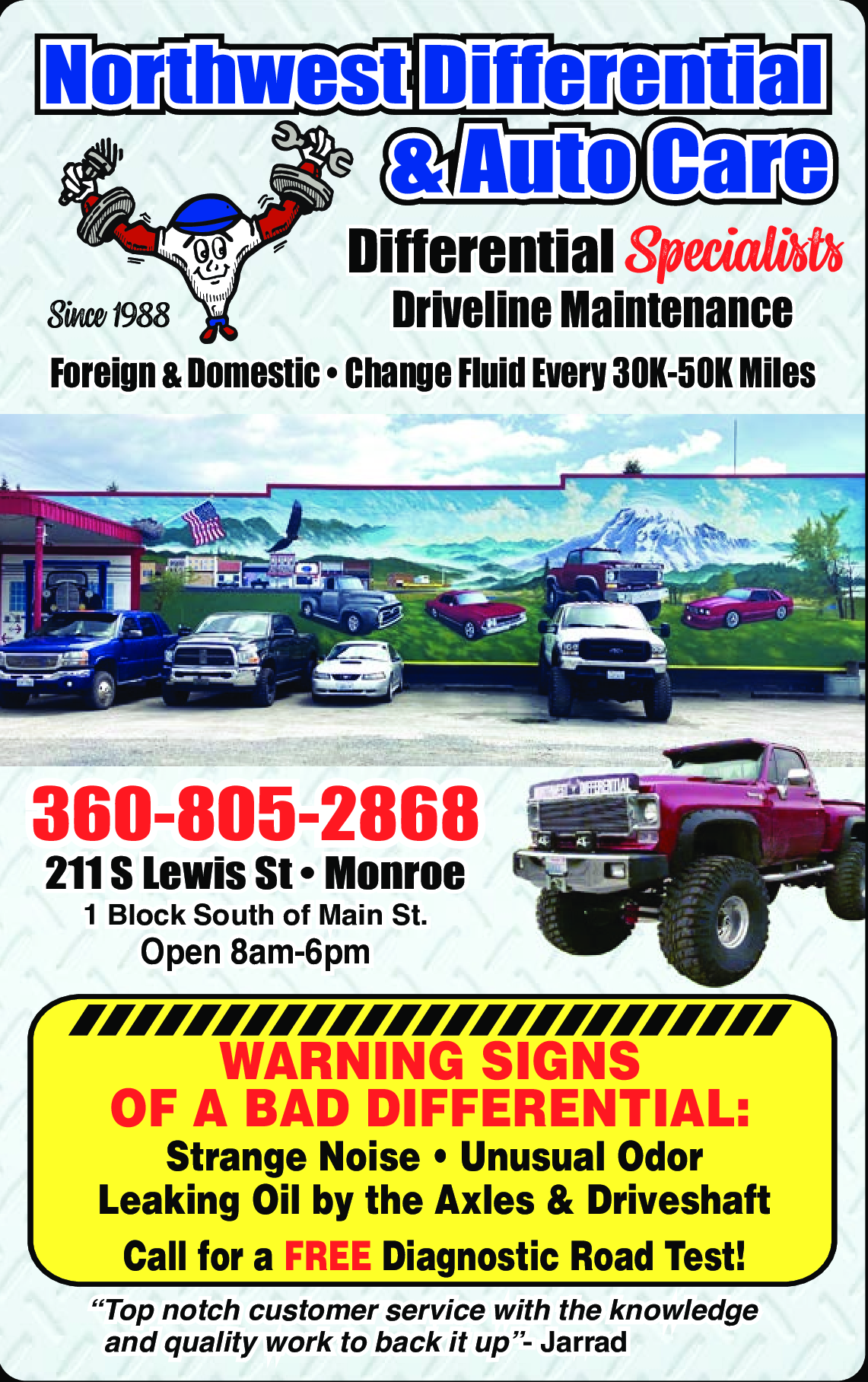 Call for a FREE Diagnostic Road Test! 360-805-2868