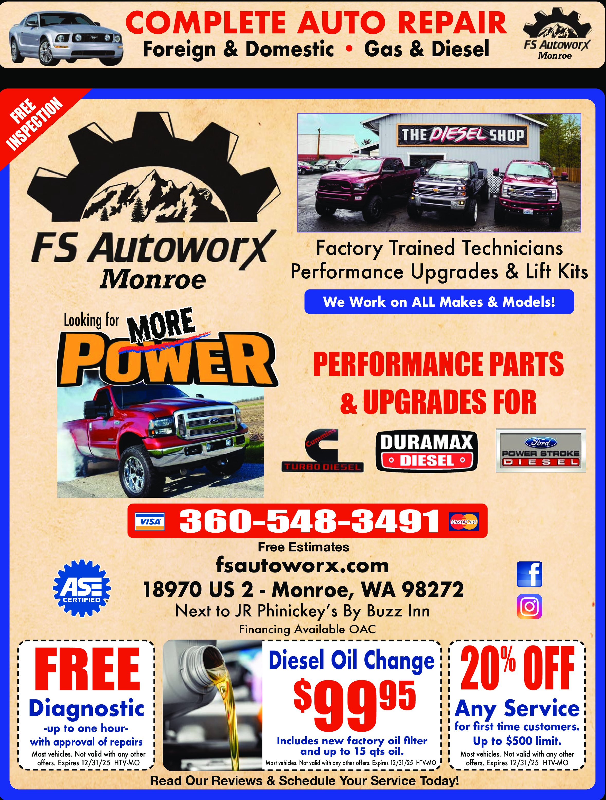 Diesel Oil Change $99.95