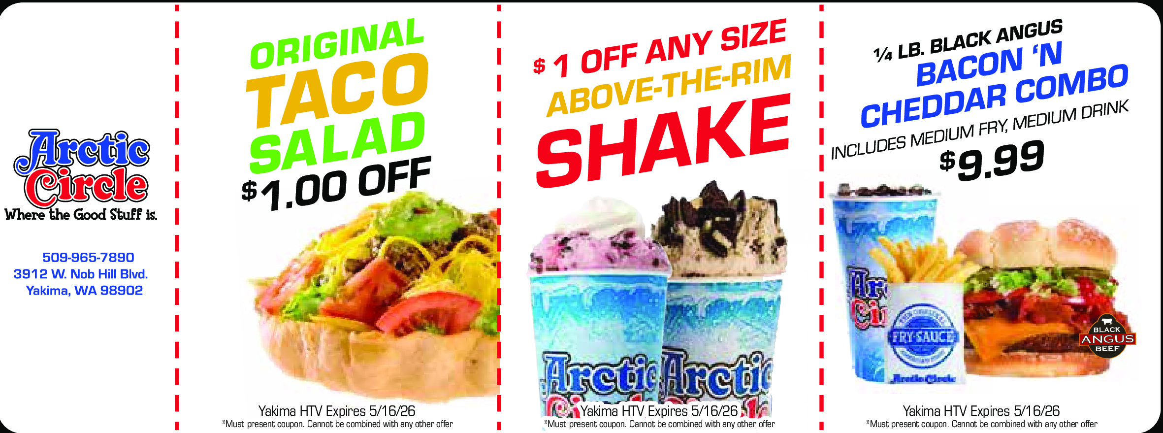 Yakima HTV Expires 5/16/26. Must present coupon. Cannot be combined with any other offer.