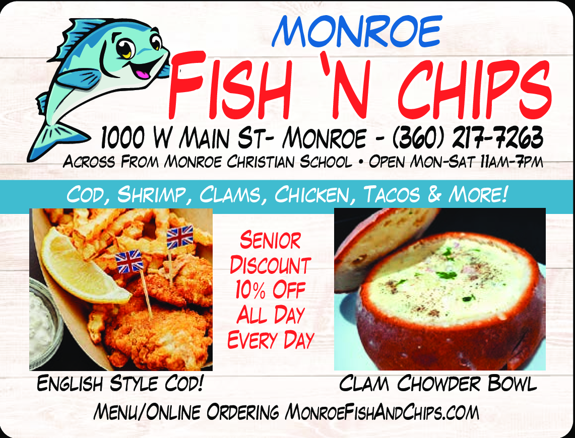 We serve hot and crispy fish 'n' chips baskets... Shrimp and chicken strips too!