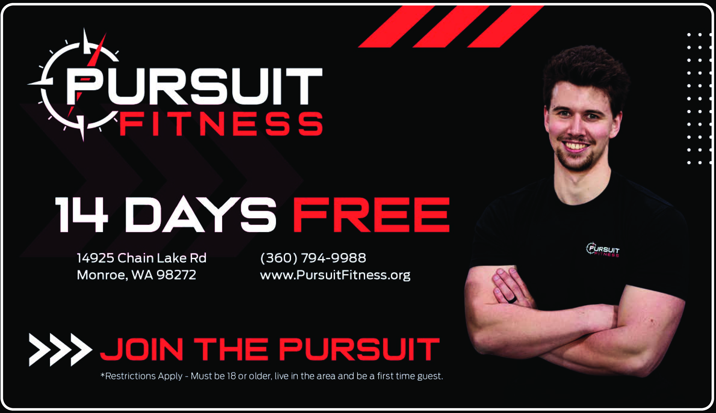 Restrictions apply. Must be 18 or older, live in the area and be a first time guest.