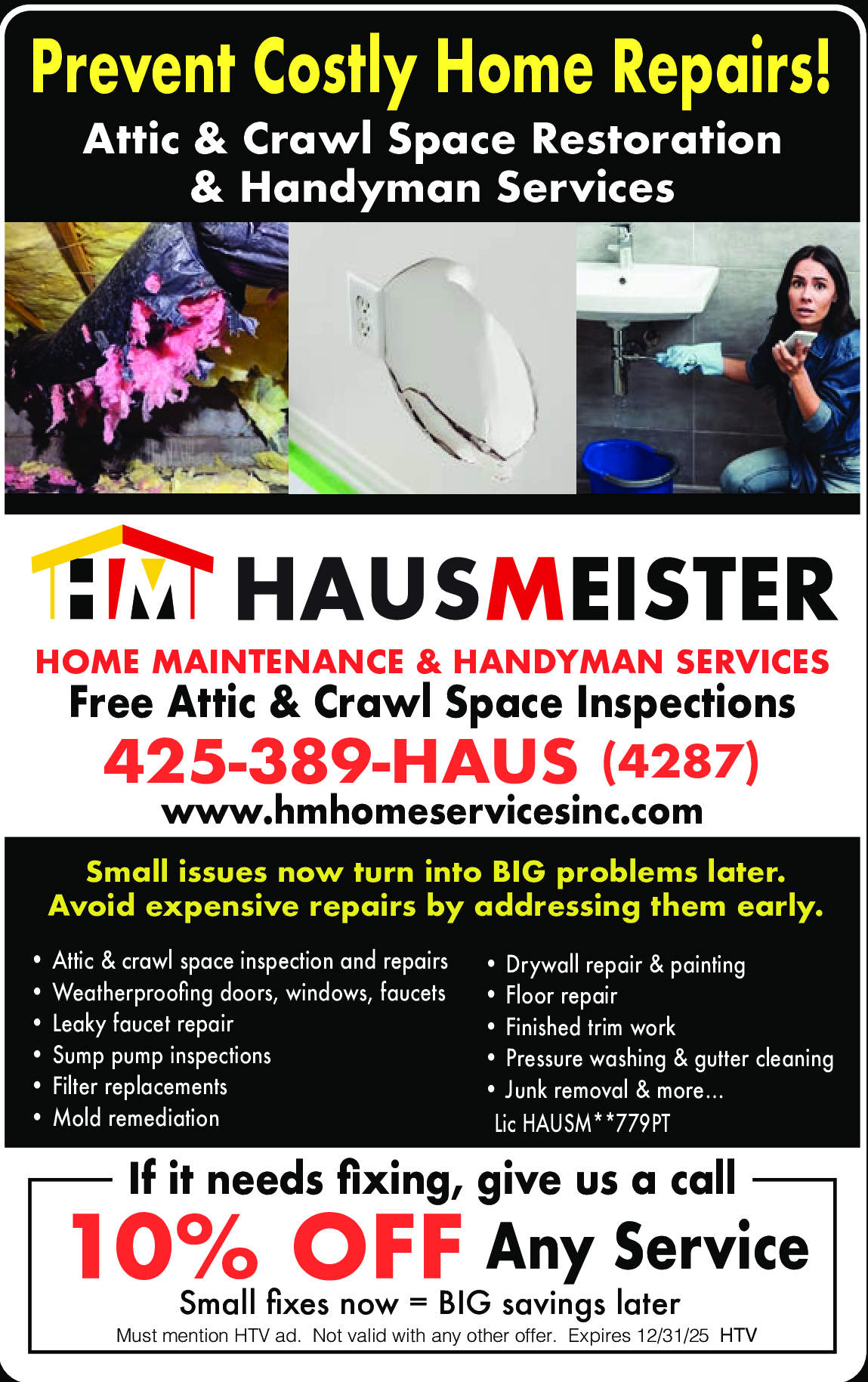 Must mention HTV ad. Not valid with any other offer. Expires 12/31/25. HTV