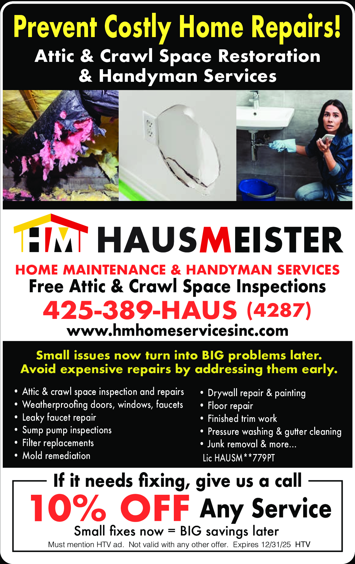 Must mention HTV ad. Not valid with any other offer. Expires 12/31/25. HTV