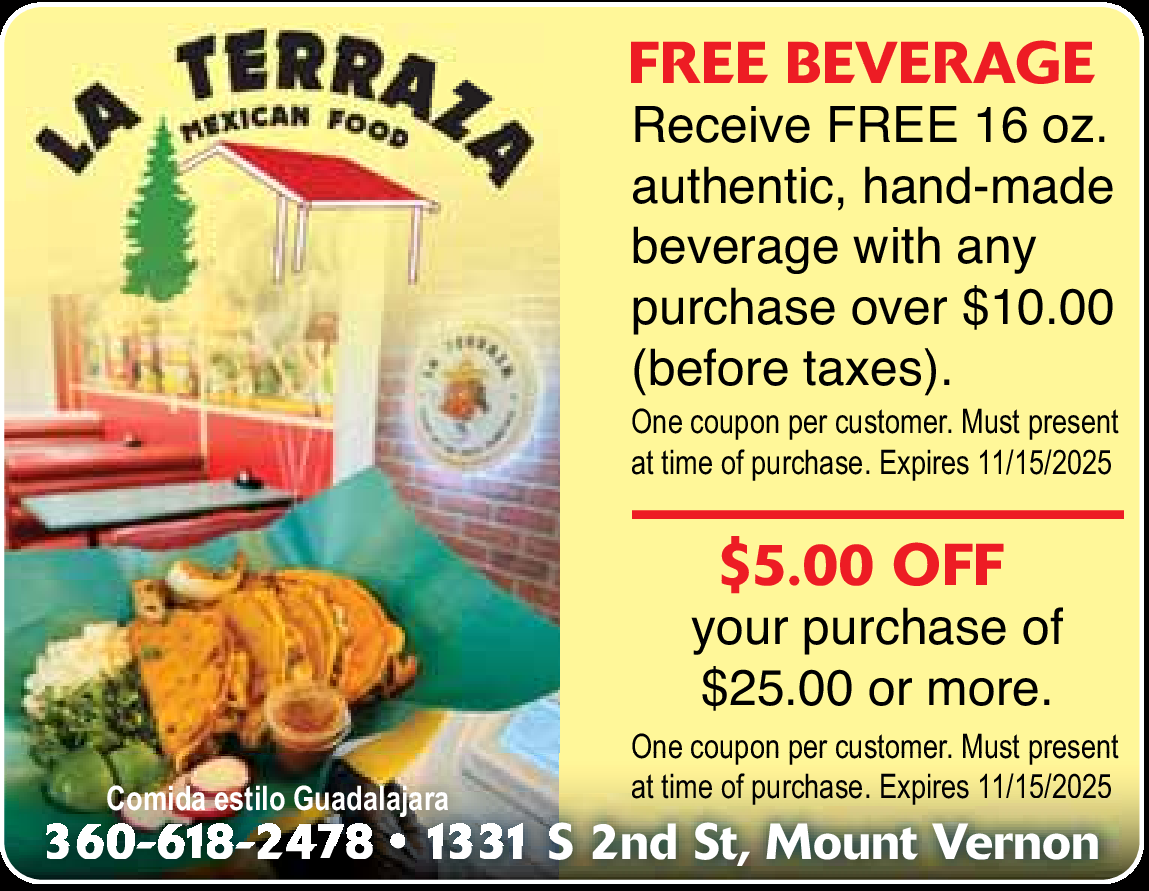 One coupon per customer. Must present at time of purchase. Expires 11/15/2025.