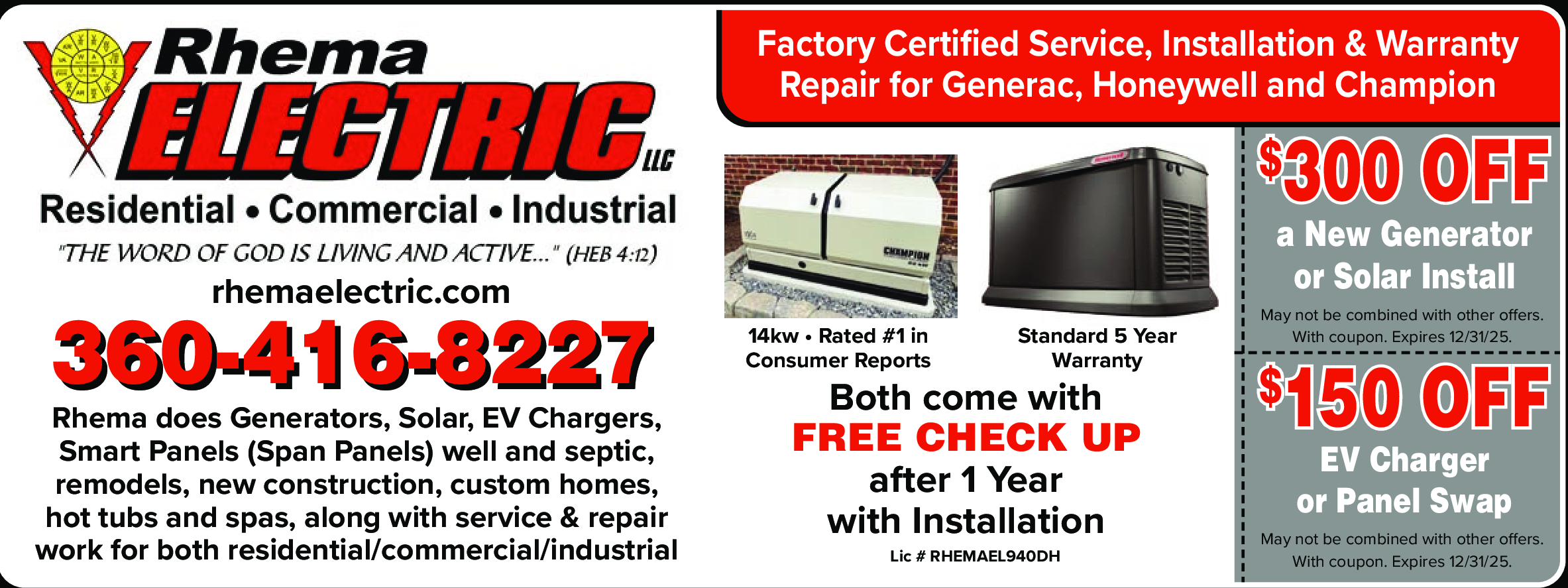 May not be combined with other offers. With coupon. Expires 12/31/25.