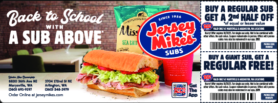 Buy a Regular Sub, Get a 2nd Half OFF *of equal or lesser value