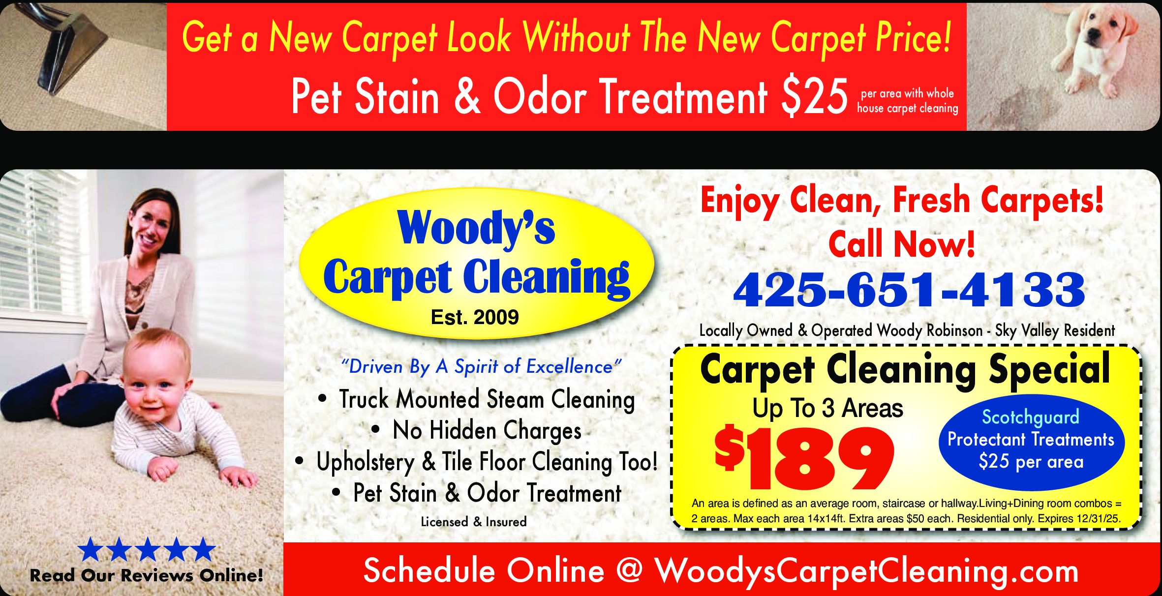 Carpet Cleaning Special! Up to 3 Areas $189 - Scotchguard Protectant Treatments $25 per area