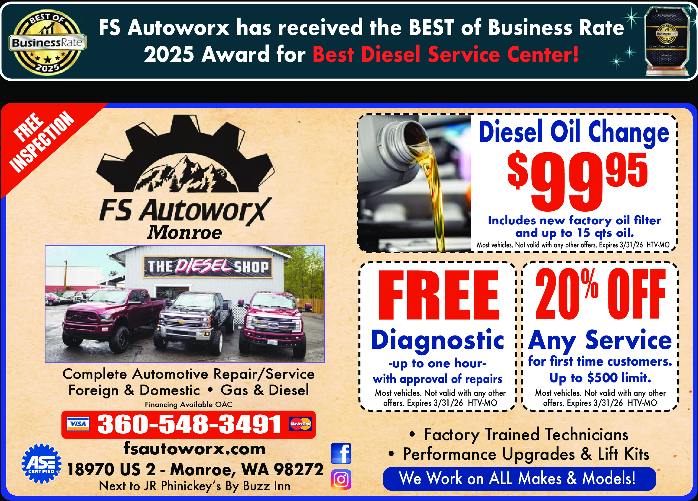 Most vehicles. Not valid with any other offers. Expires 3/31/26. HTV-MO