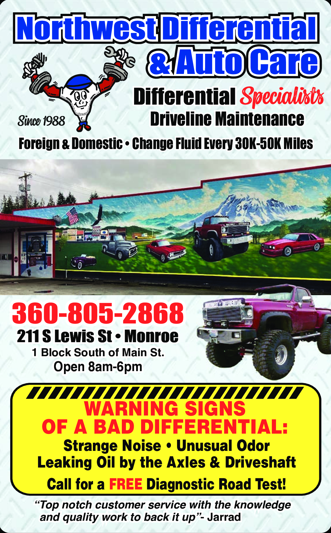 Call for a FREE Diagnostic Road Test! 360-805-2868