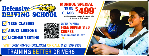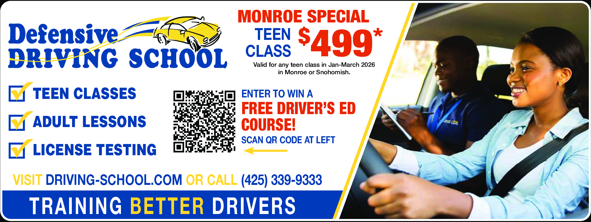 Valid for any teen class in Jan-March 2026 in Monroe or Snohomish.