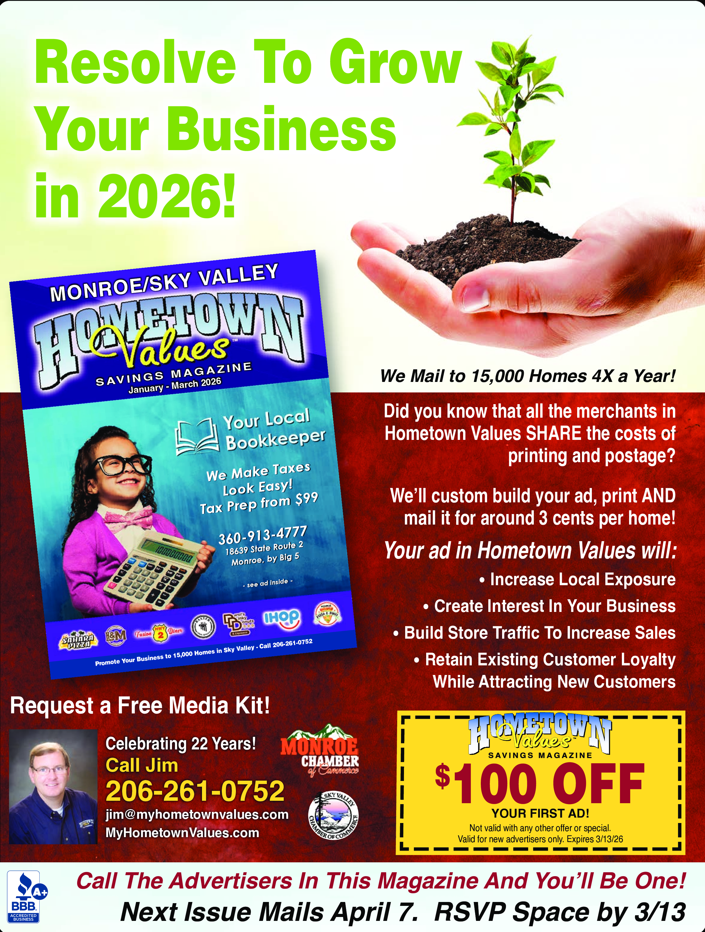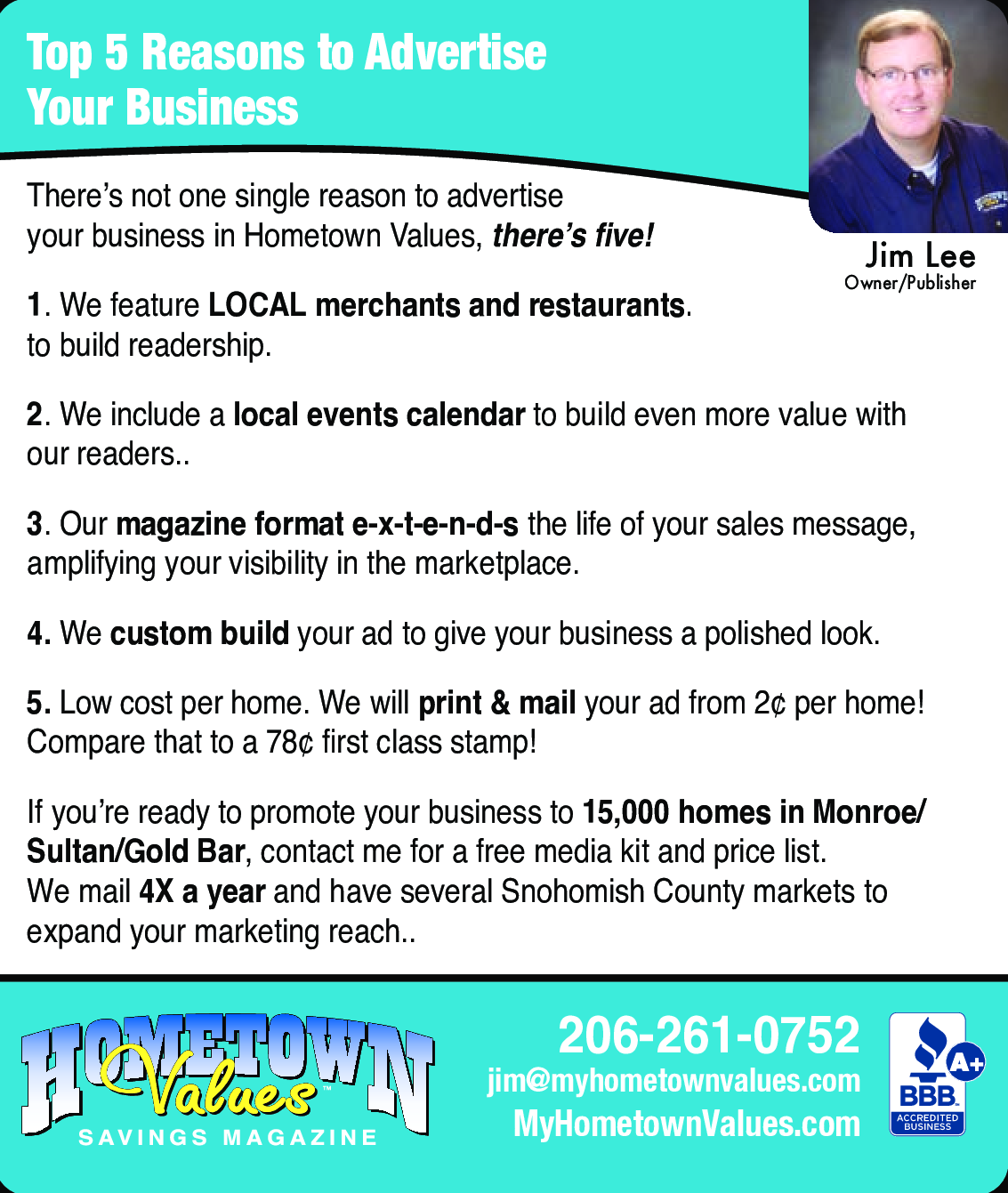 $100 OFF Your First Ad! Request a FREE Media Kit - Call Jim at 206-261-0752