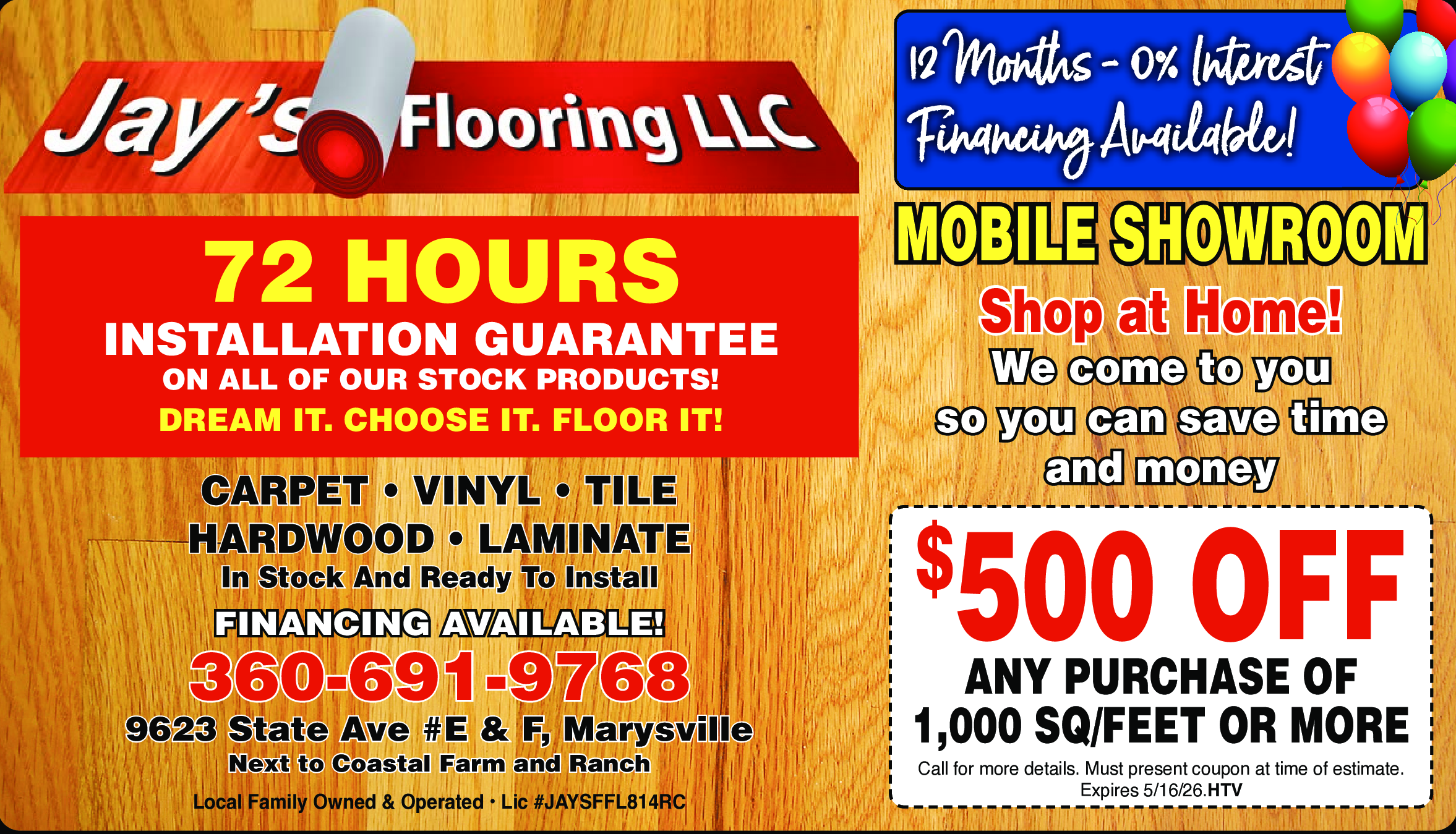 $500 OFF Any Purchase of 1,000 sq/ft or more