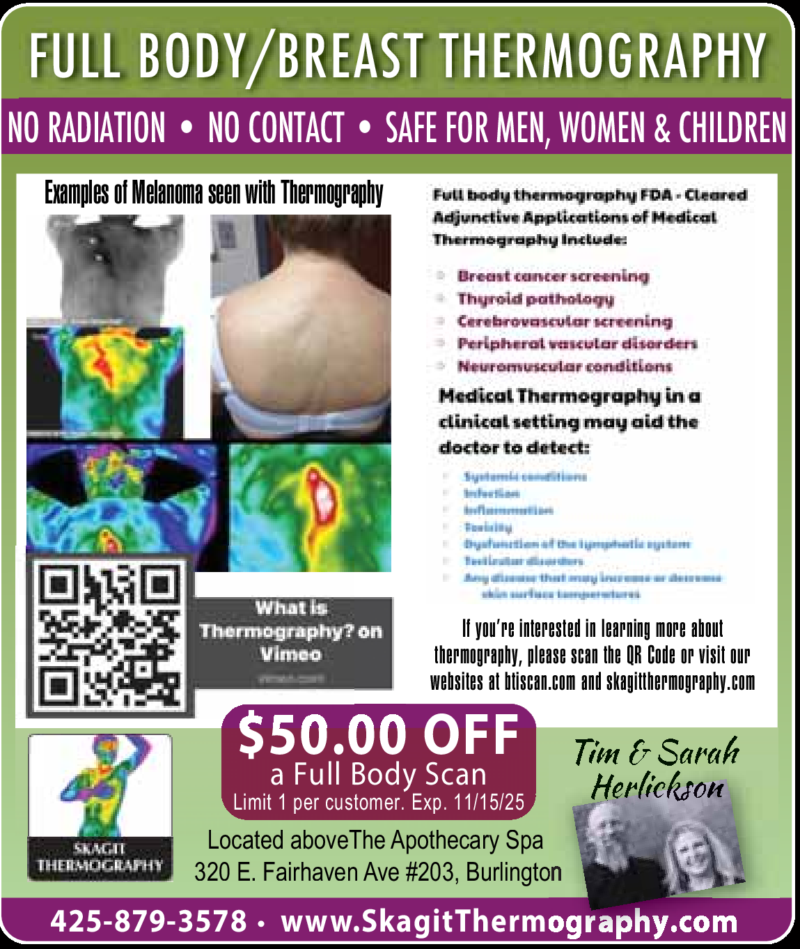 We offer full body thermal imaging. No contact, no radiation, and no compression! It is safe adjunctive health screening of the breasts, thyroid, and other pathologies for men, women, and children.