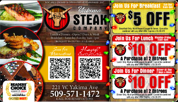 Join Us For Dinner! $10 OFF A Purchase of 2 Entrees! Dinner All Day, 7 Days a Week