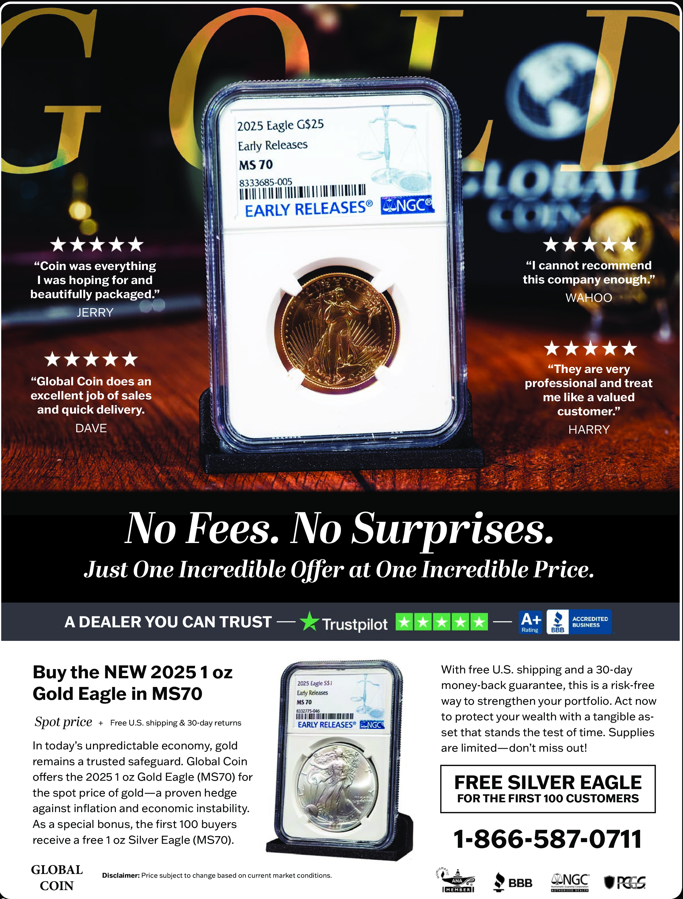 FREE Silver Eagle for the First 100 Customers! 1-866-587-0711