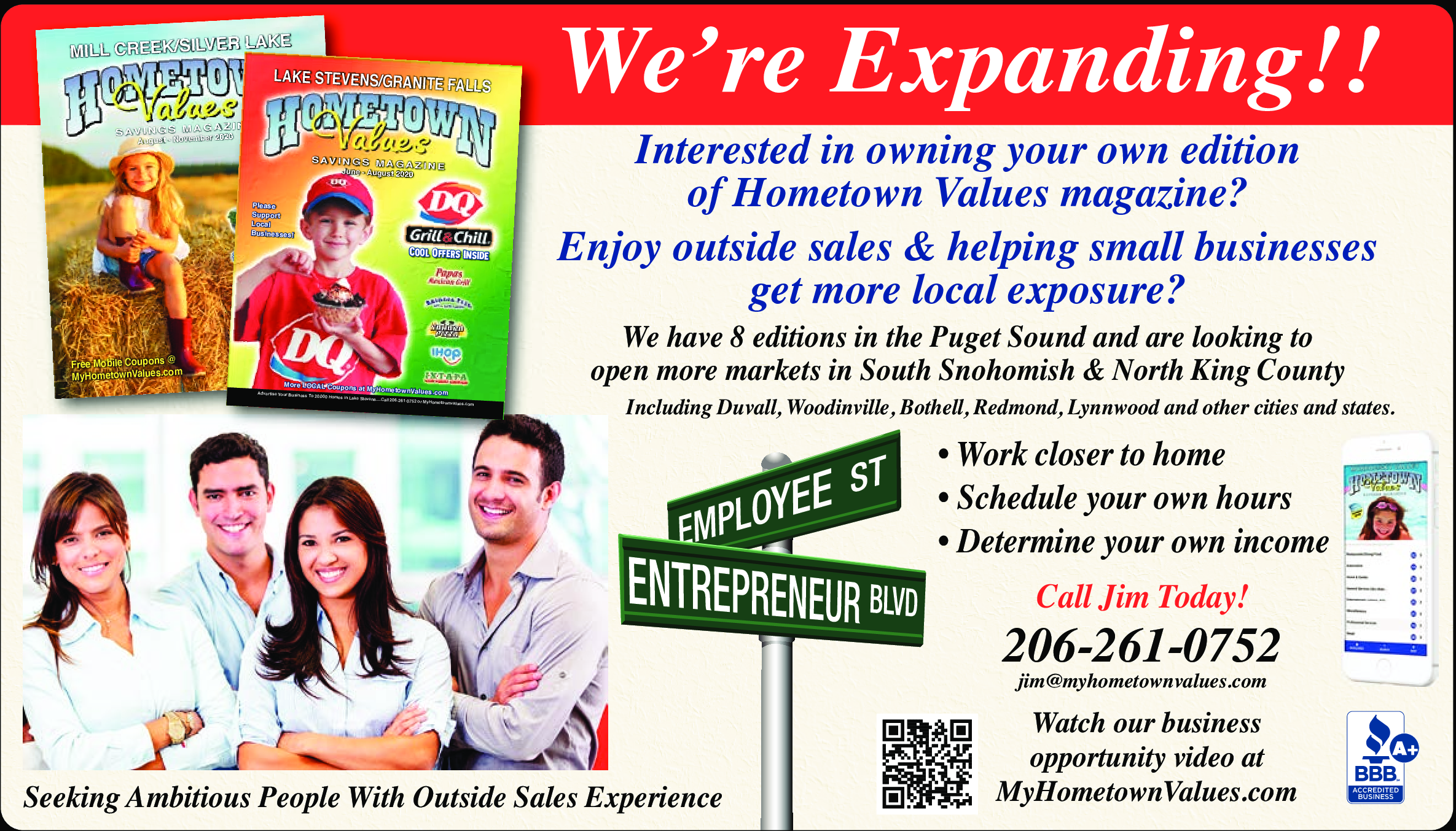 Interested in owning your own edition of Hometown Values magazine? Call Jim Today! 206-261-0752