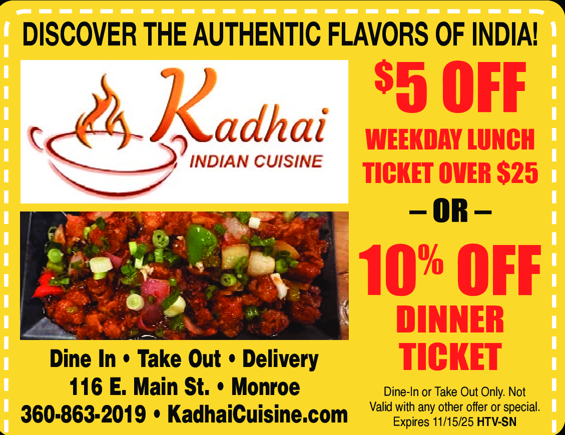 Dine-In or Take Out Only. Not valid with any other offer or special. Expires 11/15/25. HTV-SN