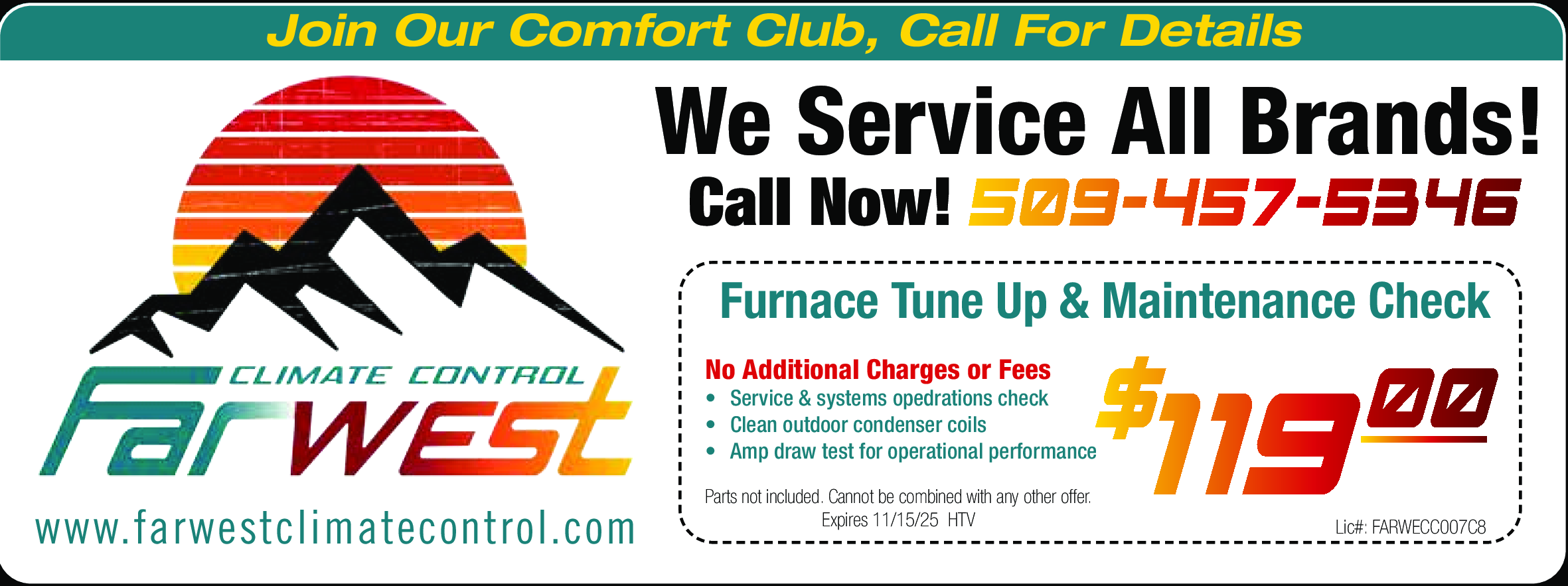 Parts not included. Cannot be combined with any other offer. Expires 11/15/25. HTV