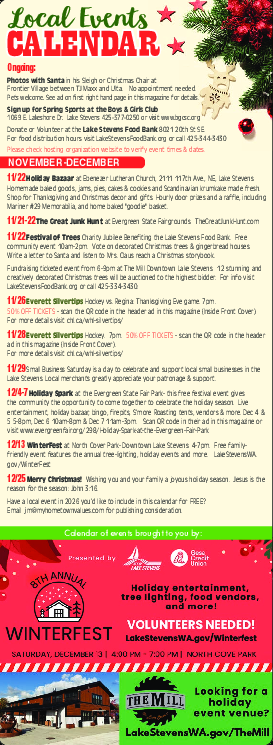 Looking for a holiday event venue? Visit LakeStevensWA.gov/TheMill