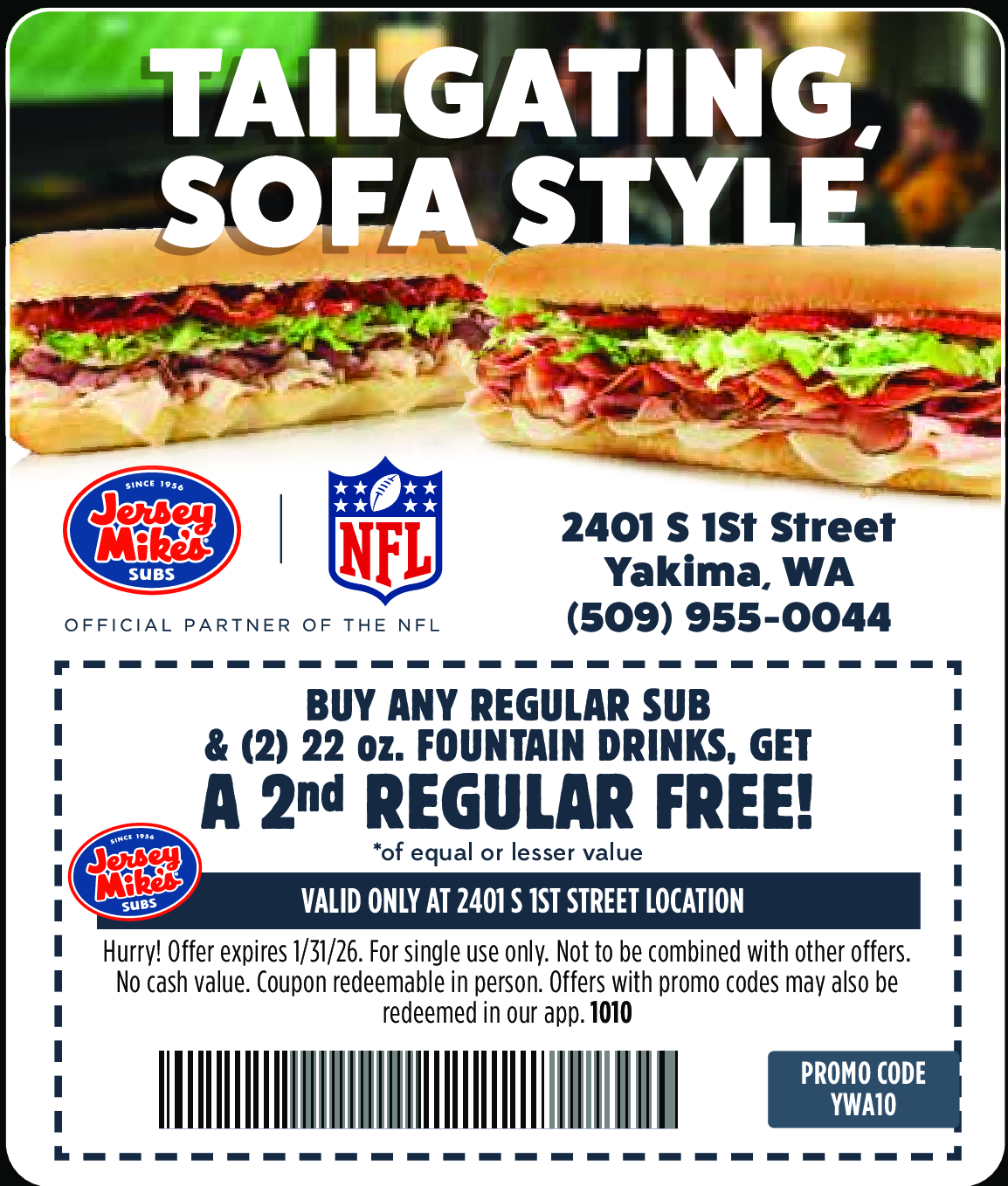 VALID ONLY AT 2401 S 1ST STREET LOCATION. Hurry! Offer expires 1/31/26. For single use only. Not to ...Morebe coined with other offers. No cash value. Coupon redeemable in person. Offers with promo codes may also be redeemed in our app. 1010 PROMO CODE YWA10 Less
