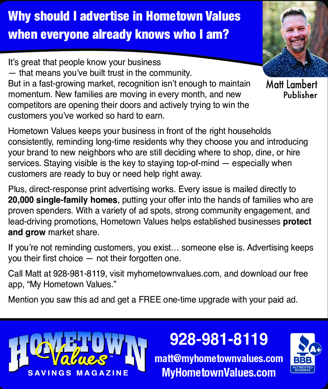 Mention you saw this ad and get a FREE one-time upgrade with your paid ad
