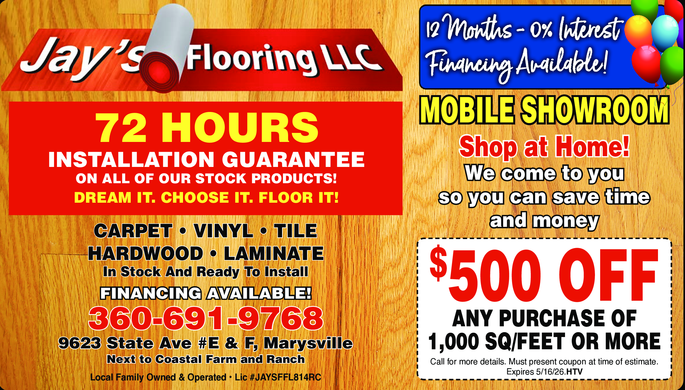 $500 OFF Any Purchase of 1,000 sq/ft or more