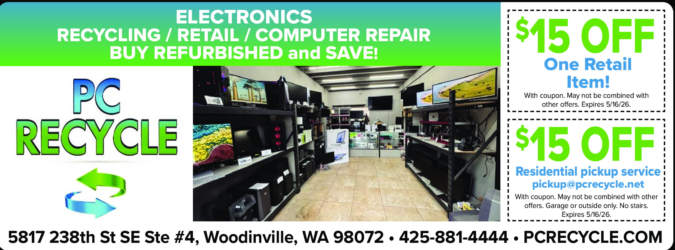 With coupon. May not be combined with other offers. Expires 5/16/26.